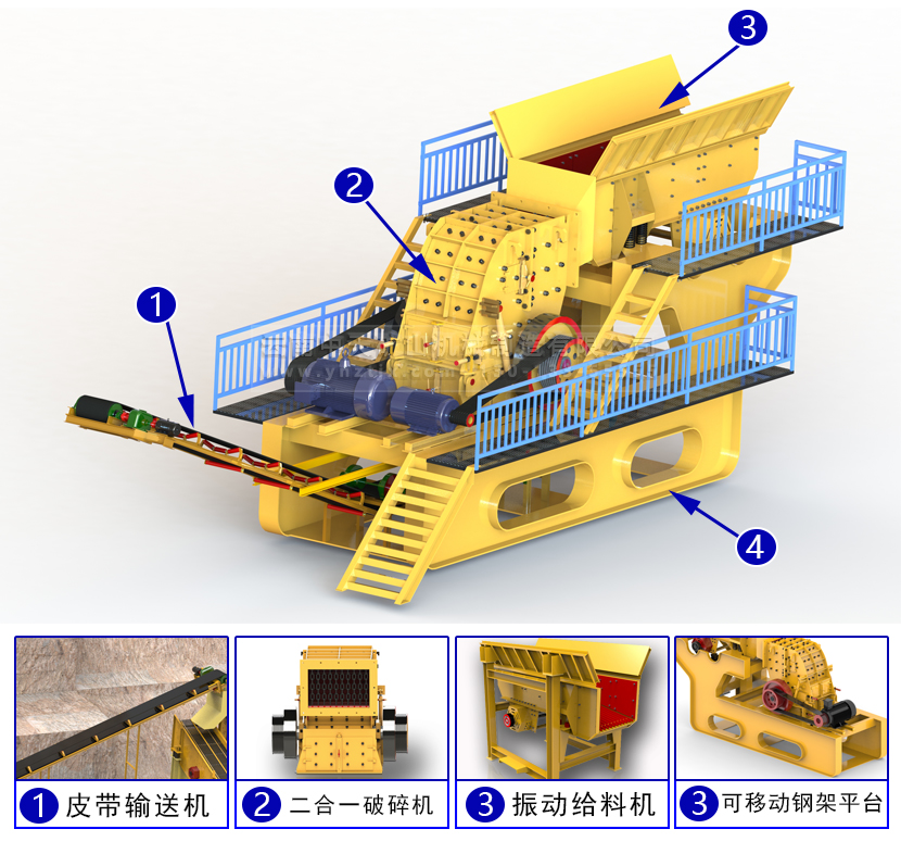 【進(jìn)料粒度】:350mm-1200mm 【生產(chǎn)能力】:30-600t/h