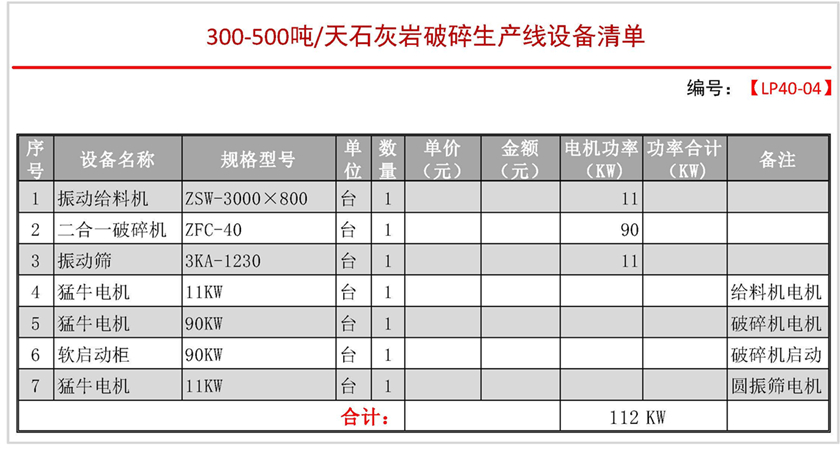 【裝機(jī)功率】:112KW 【適用物料】:石灰石