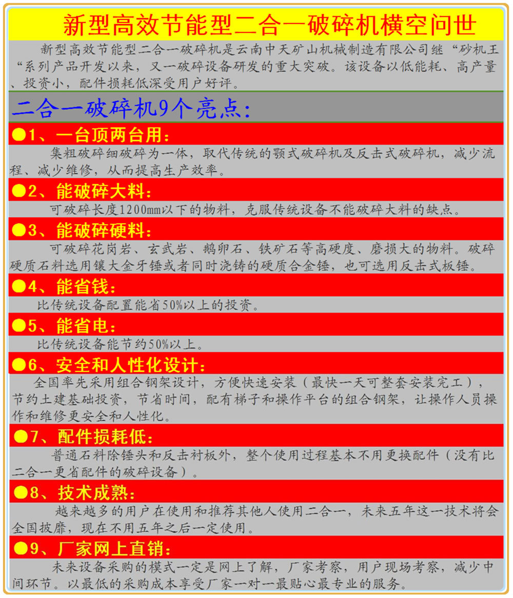 新型高效節(jié)能型二合一破碎機(jī)的八大優(yōu)勢(shì)特點(diǎn):