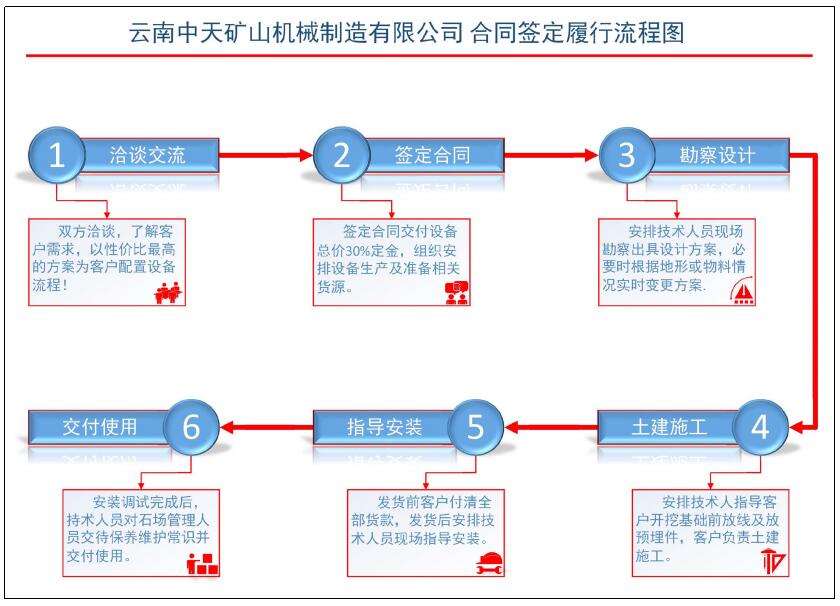 以上就是礦石破碎機(jī)售價(jià)多少錢(qián)的分析總結(jié),如果您想以較低的費(fèi)用選購(gòu)到較高產(chǎn)、高效、廉價(jià)的礦石破碎機(jī)設(shè)備,那么云南中天絕對(duì)是您很好的選擇??傊?,云南中天無(wú)論是技術(shù)、設(shè)備還是售后服務(wù)都是國(guó)內(nèi)不錯(cuò)的,一定能為您創(chuàng)造理想的效益,不會(huì)讓您失望。設(shè)備的價(jià)格就取決于您的原石硬度、成分和你的產(chǎn)量等因素。云南中天的設(shè)備選購(gòu)流程如下: