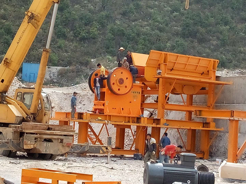 選用了帶鋼架結(jié)構(gòu)的安裝方式,拼接起來(lái)就可以使用,給料機(jī)鄂破也安裝完成了